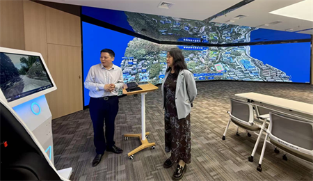 随后,黄敏学副院长带领调研组参观了学院智慧决策与创新空间。参观中,黄副院长详细阐释了该空间的设立背景,深入解读其秉持的发展理念、功能模块、运作思路,并细致介绍合作模式,展示了一系列具有代表性的成果。