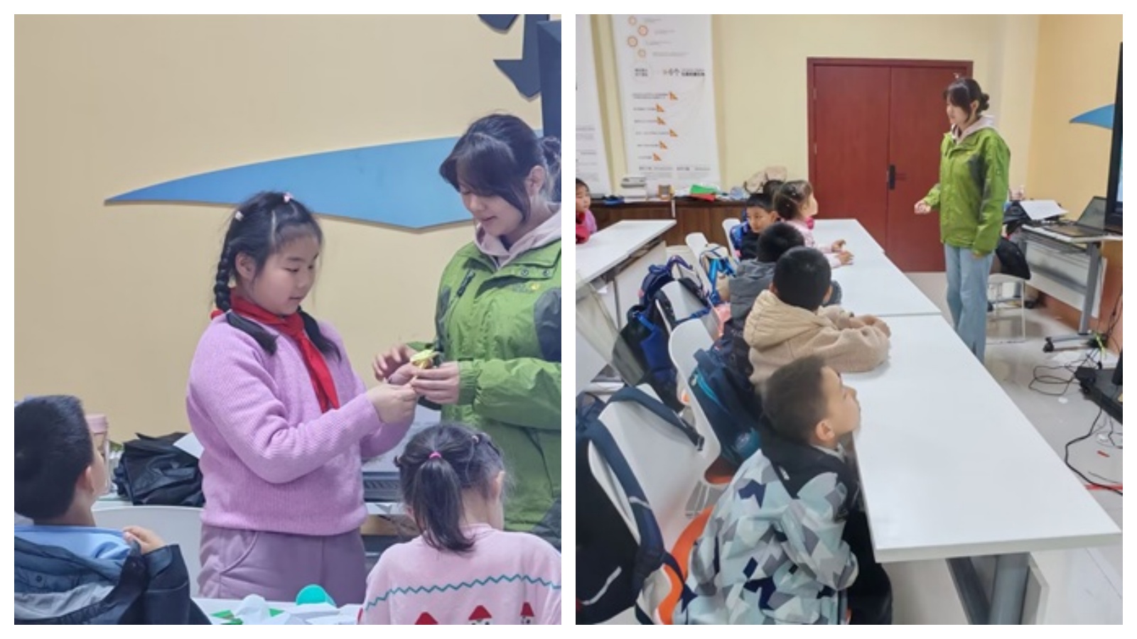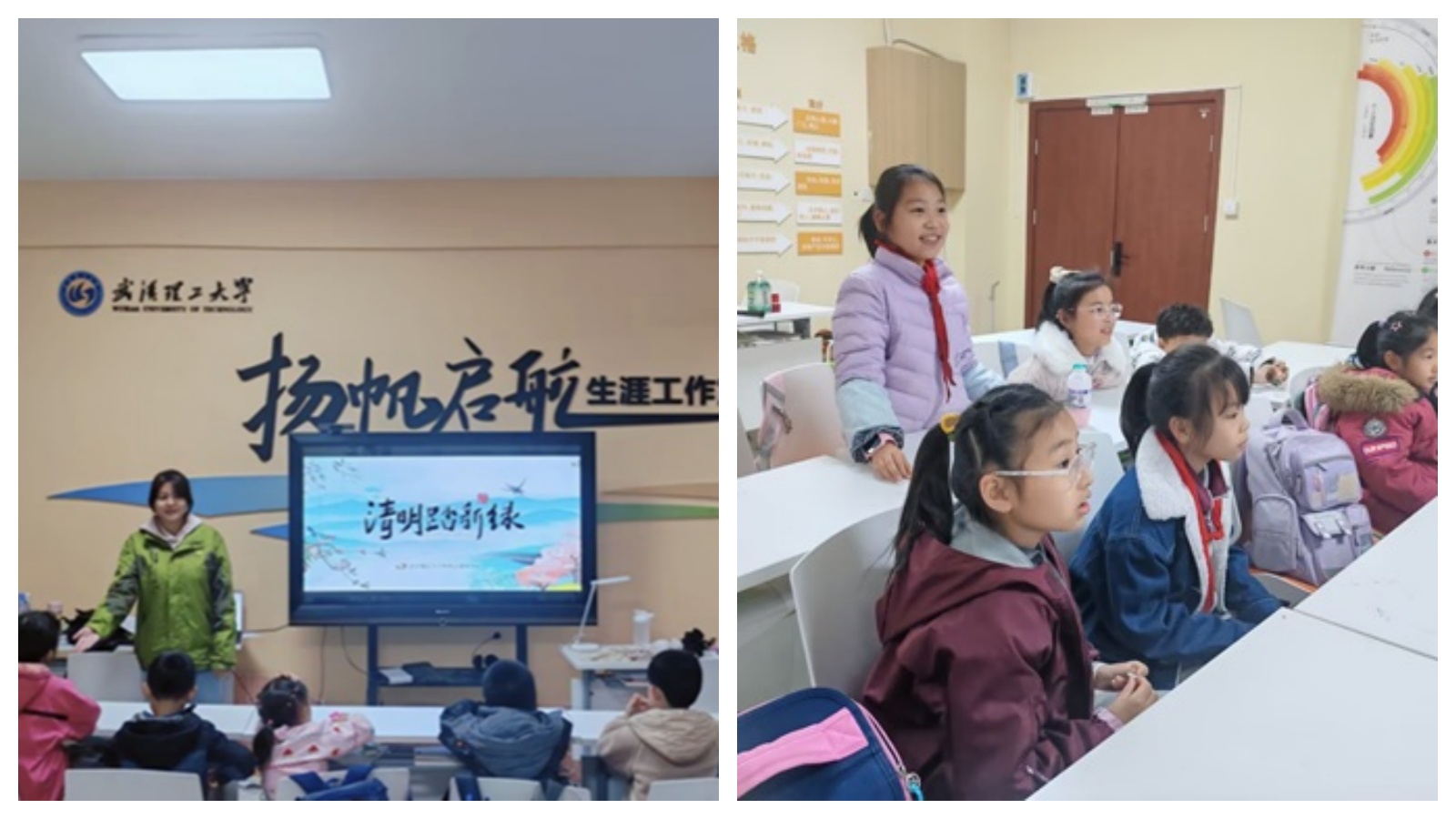 课堂伊始,志愿者以生动的故事导入,讲述清明节与寒食节的渊源,从介子推的传说到清明节成为法定节假日的历程,让学生们深入了解清明节“兼具节气与节日”的双重内涵。在习俗介绍环节,通过图片展示、互动讲解,详细阐述了荡秋千、踢蹴鞠、踏青、扫墓、植树、放风筝等传统习俗。学生们不仅知晓了习俗的历史背景,更通过“知识抢答”环节巩固所学,现场气氛热烈,积极参与作答。
