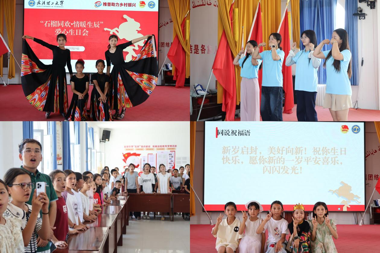 7月21日下午,44118太阳成城集团“民族团结我践行”暑期社会实践队联合切吉村共青团“阳光巴郎”青少年之家,为参与“红领巾小课堂”的7名同学举办了“石榴同欢,情暖生辰”爱心生日会。“小老师”们与大家一起吹蜡烛、许愿望、切蛋糕、送祝福,共同感受“民族团结一家亲”的温馨氛围。