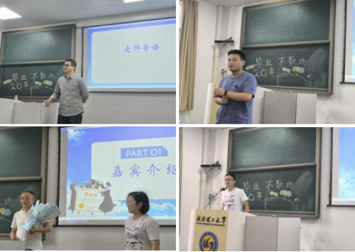 在主题班会环节,校友们逐一上台分享了自己毕业后的工作和生活感悟。副院长王超、班主任洪元义代表学校对校友们荣归母校表示欢迎,与校友们共同回忆了大学生生活的点点滴滴,勉励校友们继续秉承武汉理工精神在各自的领域成就精彩。党委副书记张冰向校友们介绍了学校、学院的校友工作情况,并表示学院将继续深化做好校友服务内涵建设,努力成为校友们情感互联、资源互享、事业互通的温情驿站。